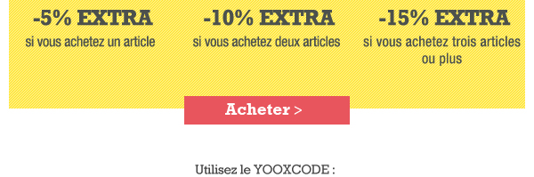 | Pour être sûr(e) de toujours recevoir les communications de yoox.com, ajoutez l'adresse myoox@yoox.com à votre carnet d'adresses. Vous recevez cette communication en tant qu'inscrit(e) au service de newsletter de yoox.com avec l'adresse e-mail prix.promotion@gmail.com YOOX S.p.A., T.V.A. 02050461207, Via Morimondo 17, 20143 Milan, Italie. | |