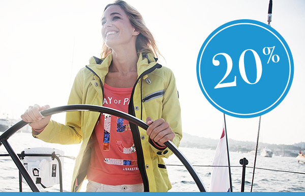 * - 20% réduction sur une sélection d’articles avec le code MUM77. Valable uniquement sur la boutique en ligne Gaastra. Validité jusqu’au 31.05.2015. Non cumulable avec d’autres bons ou promotions et non valable pour l’achat de bons-cadeaux. Dans la limite des stocks disponibles.