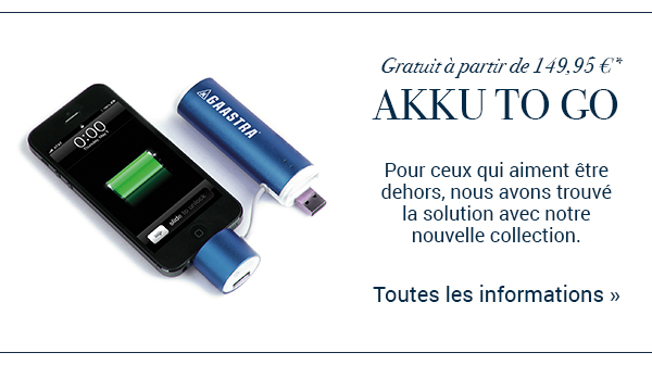 | | | | * Offre valable sur la nouvelle collection Gaastra à l’achat de min. € 149,95 sur gaastrastore.com. Jusqu’à épuisement du stock. Non échangeable en espèces et non cumulable avec d’autres offres. Max. 1 Mipow Power Tube par client. Non valable à l’achat d’un chèque-cadeau Gaastra. ATTENTION: Nous allons vous faire parvenir vos Mipow Power Tubes d’une valeur six semaines après passation de votre commande, à condition que la valeur de commande minimum de € 149,95 sera maintenue après des échanges ou retours de marchandise éventuels. | | | | |